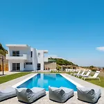 Hill & Sea View Villas住所坐落于科林比亚,设有季节性的室外游泳池,配备日光浴,阳光露台和室外游泳池. 它离查比卡修道院有10分钟车程,离坦比卡海滩有15分钟车程.